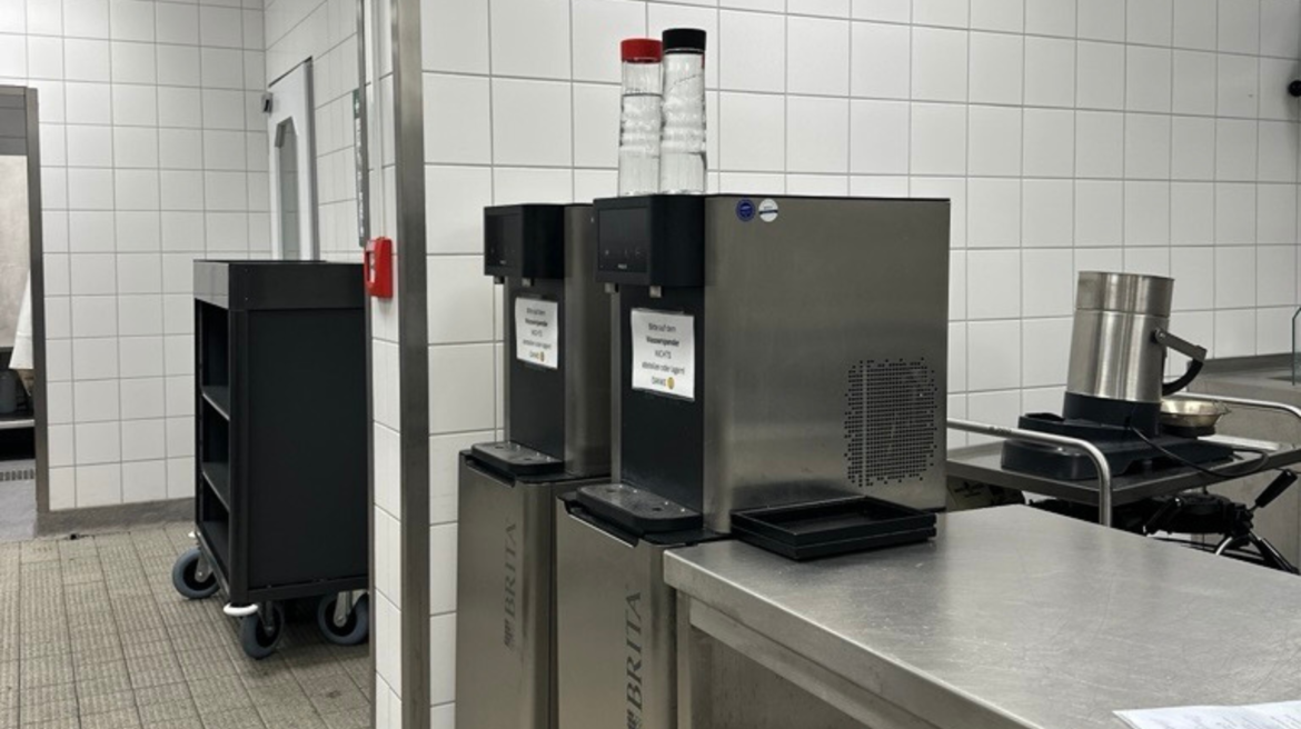Das Hotel nutzt BRITA-Filteranlagen zur lokalen Aufbereitung von Leitungswasser in Trinkqualität mit Ausnahme der Hotelzimmer, in denen aus technischen Gründen keine Wasserspender verfügbar sind. Außerdem nutzen alle Mitarbeitenden wiederbefüllbare Flaschen. Dies reduziert den Bedarf an Flaschenwasser deutlich und spart Transportwege, Verpackungsmaterial und CO₂ ein.