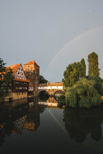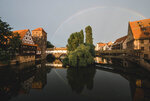 Bild Pegnitz mit Henkersteg, Weinstadel und Regenbogen (jpg, 504 KB)