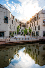 Mehr als drei Jahre sind von der Grundsteinlegung bis zur Eröffnung des Geländes vergangen. Heute zieht sich über knapp 5.200 Quadratmeter ein Gebäudekomplex, der Einzelhandel, Gastronomiebetriebe, ein Hotel und sogar ein Museum umschließt. Mittendurch führt eine breite Fußgängerpassage, die an der Südseite direkt an die Pegnitz grenzt - eine der wenigen Stellen in der Stadt, wo man direkt am Wasserufer sitzen kann. Nachdem das Areal etliche Jahre mehr oder weniger ungenutzt war, wird das Stadtbild nun nicht nur optisch aufgewertet. Endlich herrscht hier wieder reges Leben. Extrem zentral, trotzdem ein wenig „ab vom Schuss“ und entfernt vom Innenstadt-Trubel, erschließt sich ein Quartier, das wie eine eigene kleine Welt wirkt.